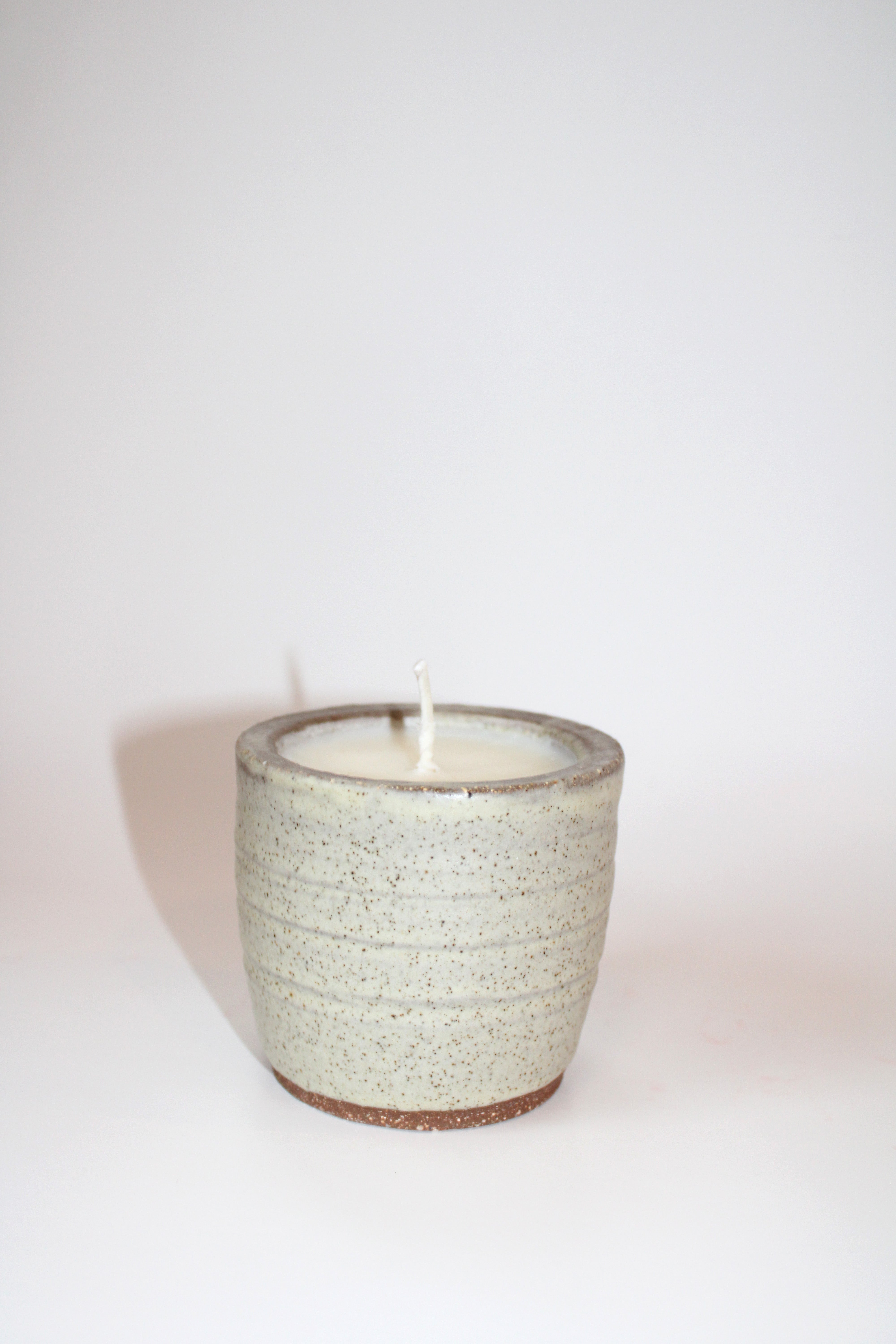 Hand-poured soy wax candles from Species by the Thousands in a bespoke ceramic vessel.
