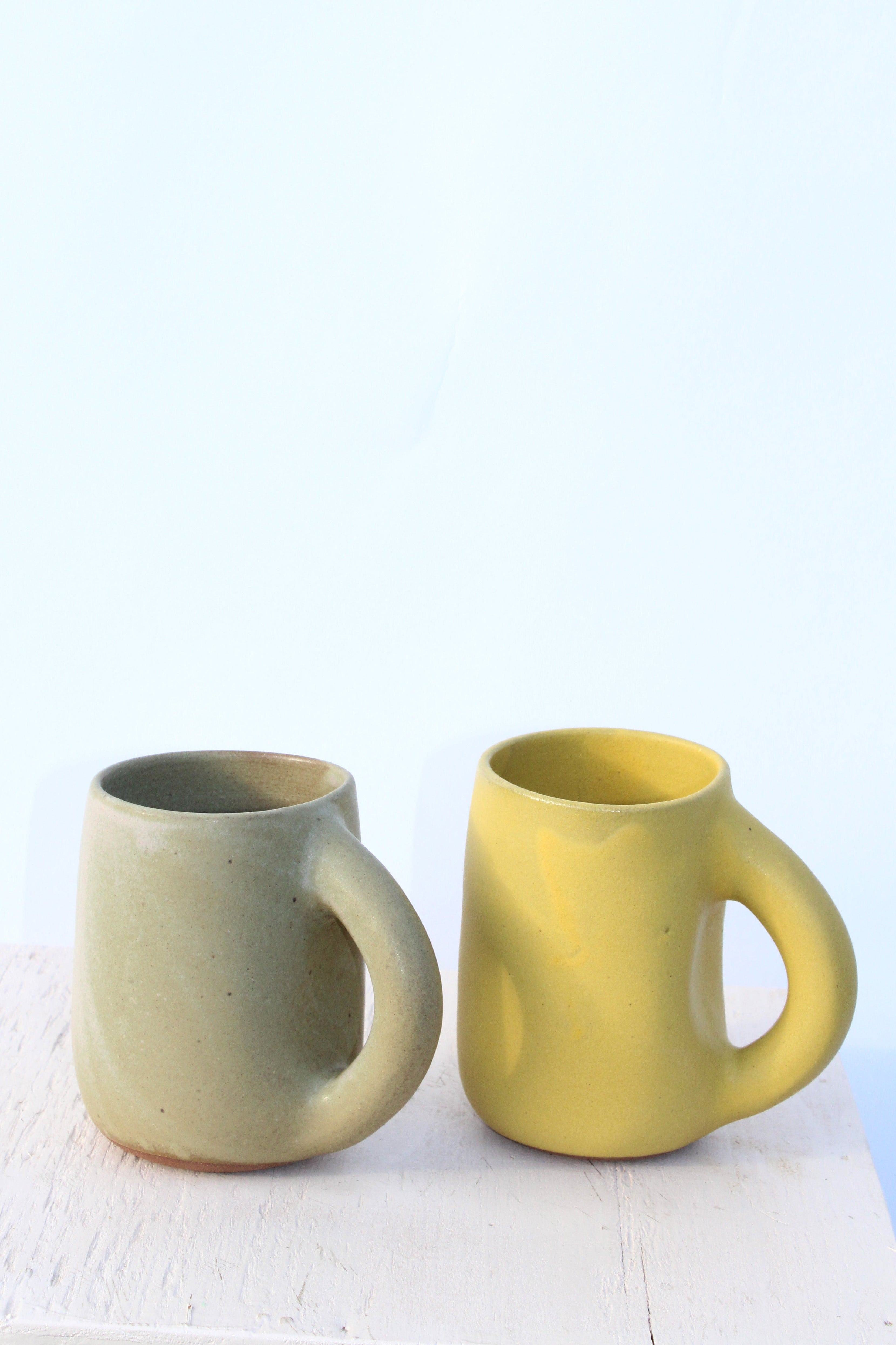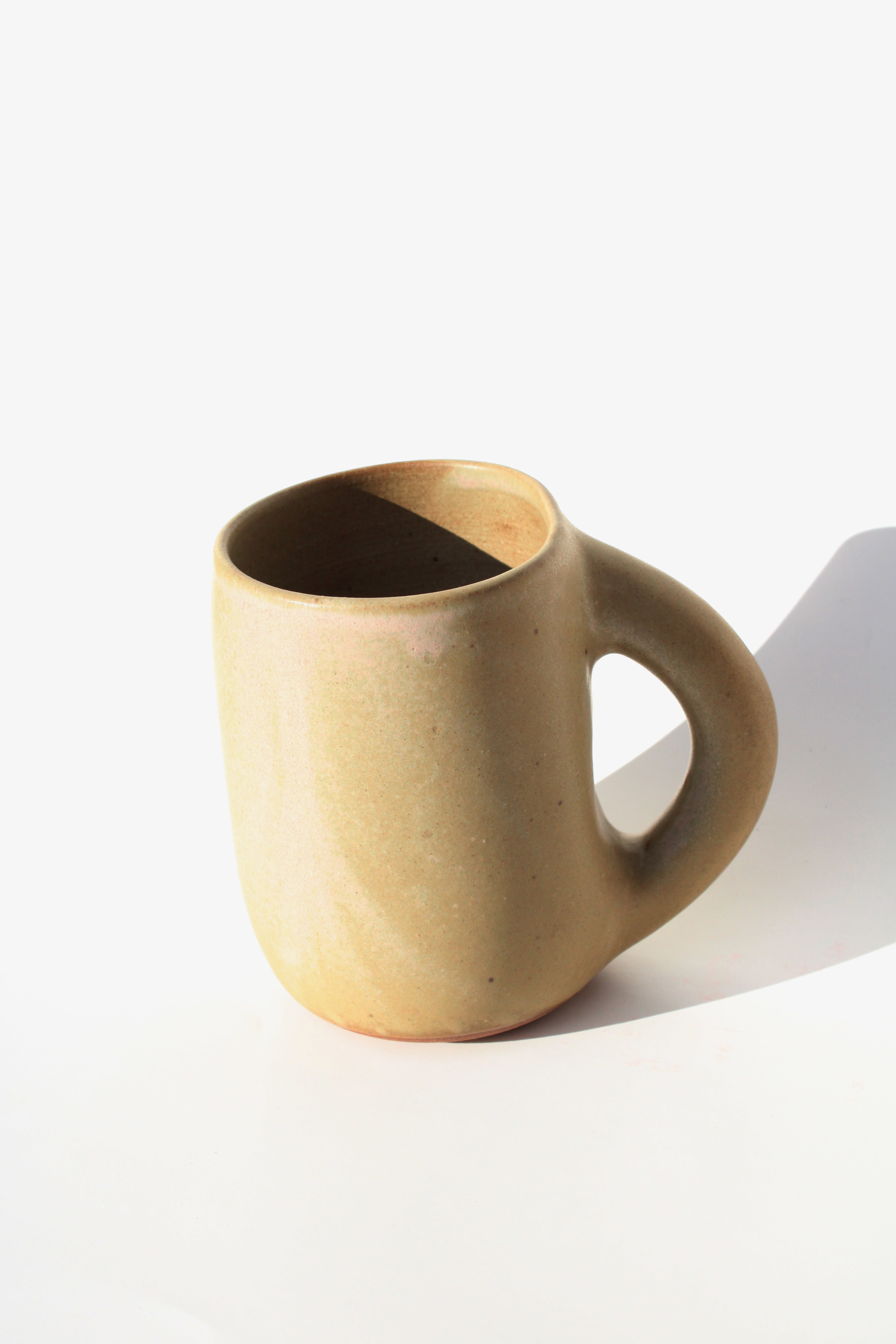 Hand thrown stoneware mug by Kati Von Lehman. A special vessel that holds eighteen ounces of your favorite beverage. Designed as a thoughtful, organic form—this is your new everyday mug.