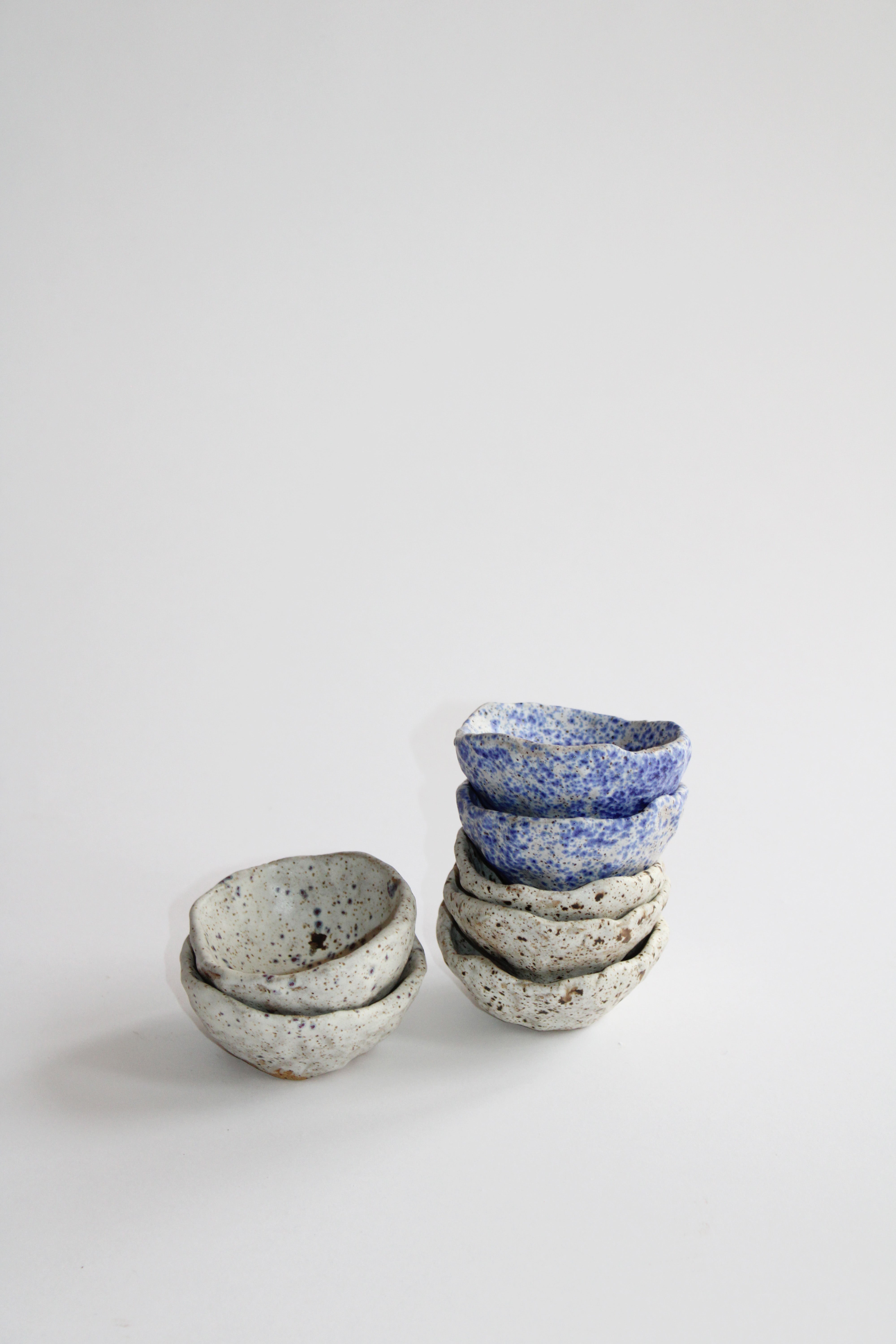 Small trinket bowls by ceramicist Annie Raysse. Well suited for holding salt, jewelry, and special treasures. Each vessel is entirely unique, with a diameter that ranges from 3.5-4in.