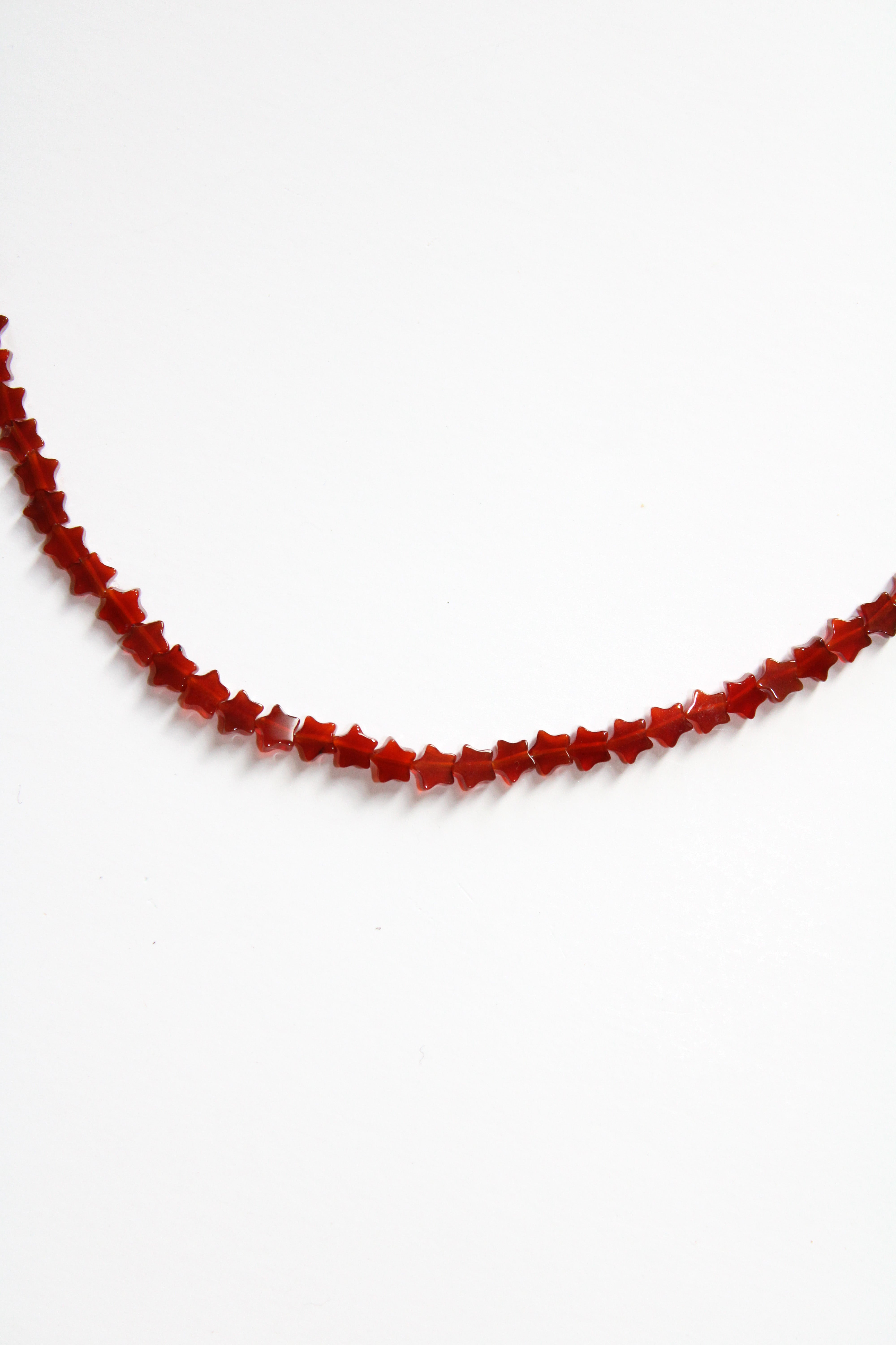 A playful take on a classic beaded necklace. Each carnelian bead is hand-carved in the shape of a star and infused with uplifting celestial power. Shoot for the stars!