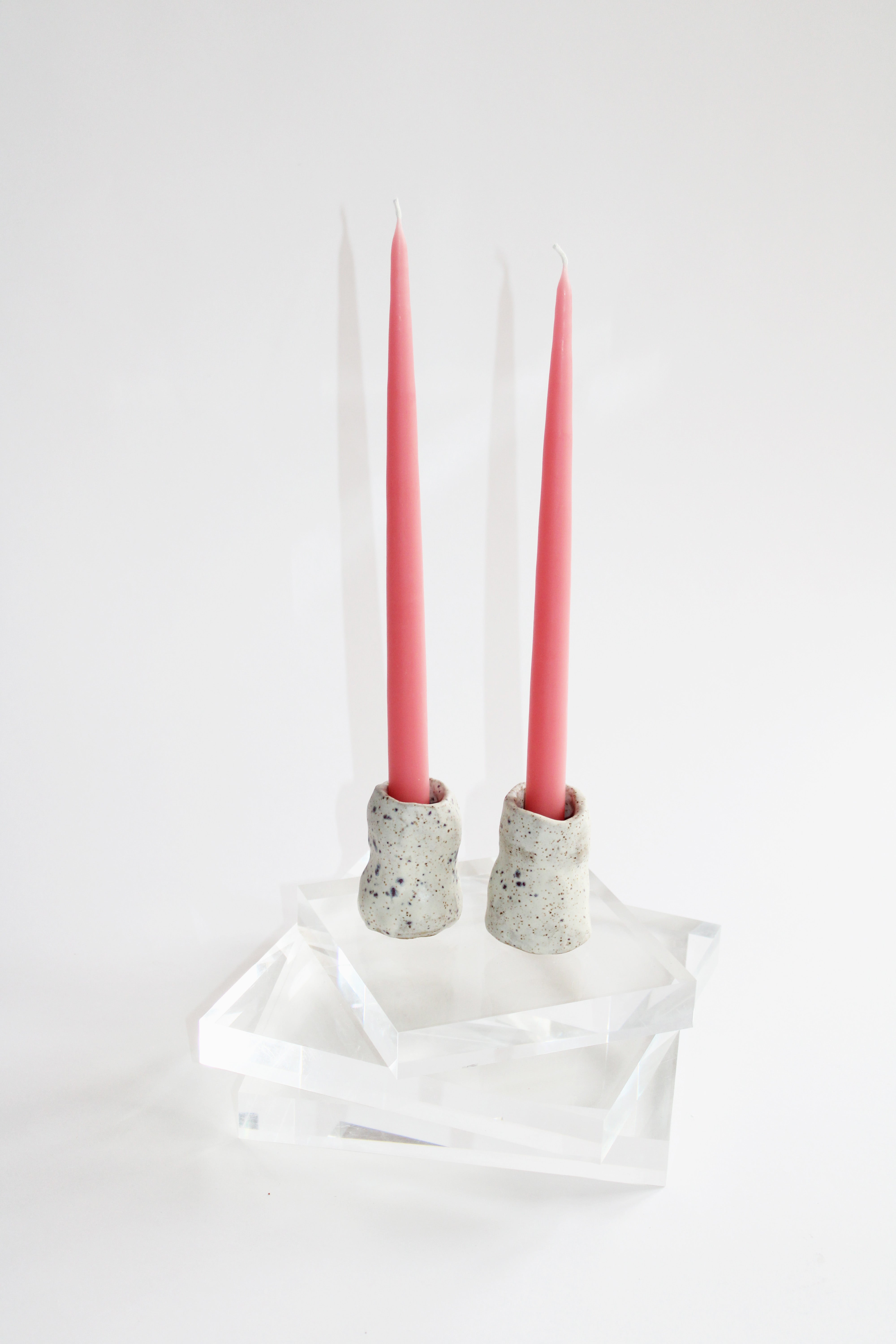 Petite, handmade candle holder by Annie Raysse in a creamy speckled glaze. Sculptural and bespoke, this treasure looks great on its own—and even better as a pair.