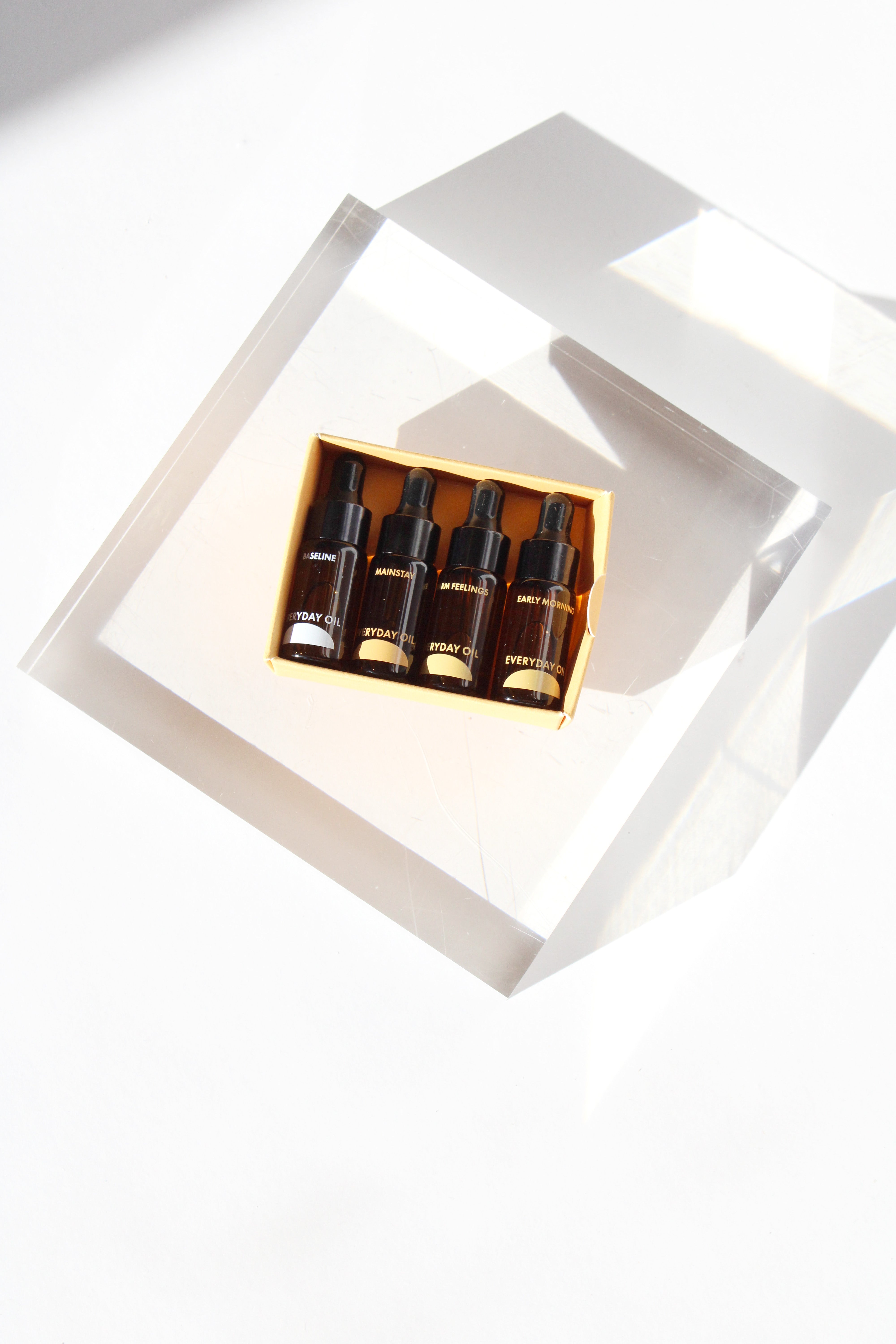 A MINI set of plant-based scents: Mainstay, Warm Feelings, Early Morning, and Baseline.