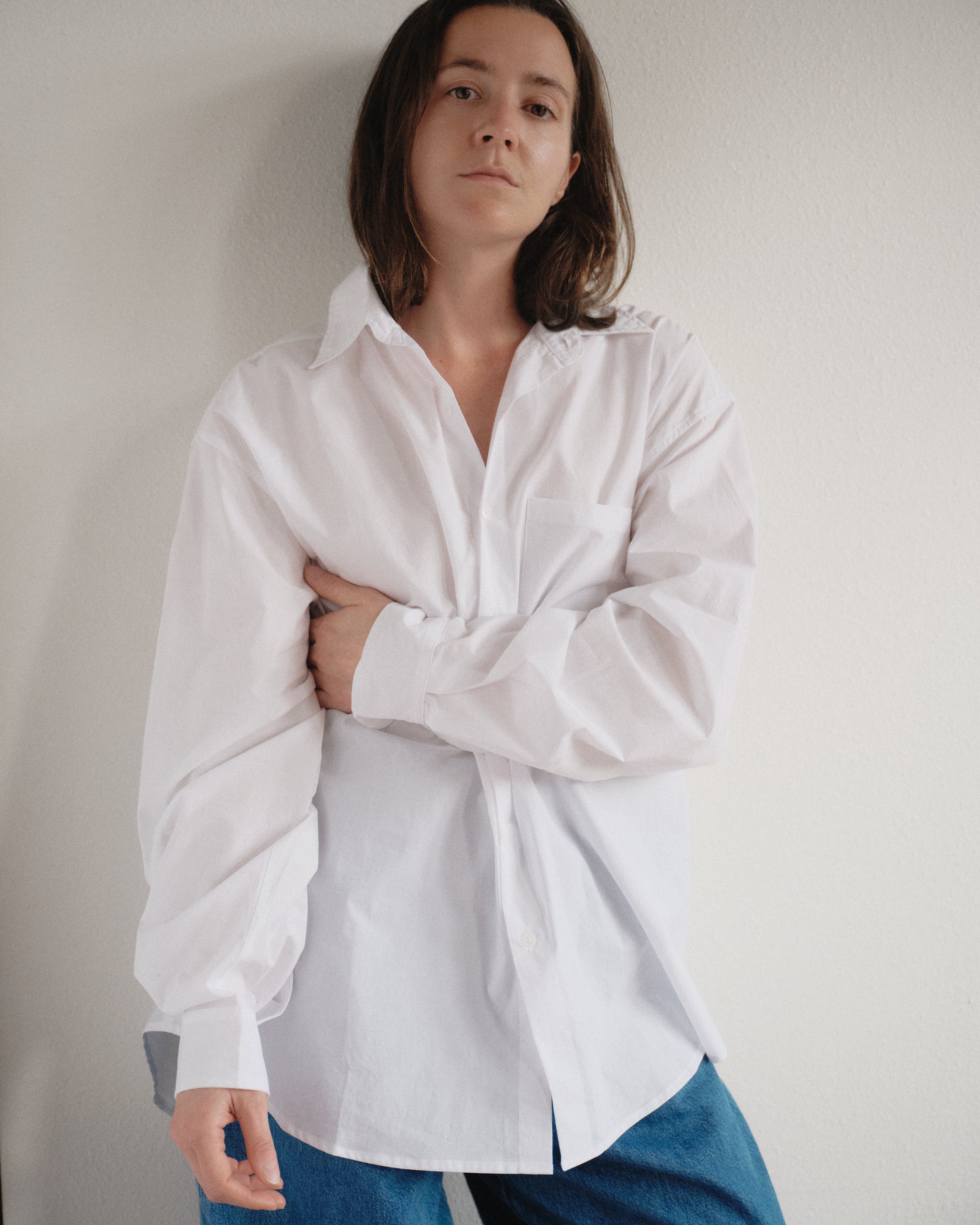 The Big Button Up is your new favorite shirt. This oversized unisex staple features a dropped shoulder, front pocket and an easy yet elegant silhouette. Made from a beautiful Japanese recycled cotton/nylon blend.