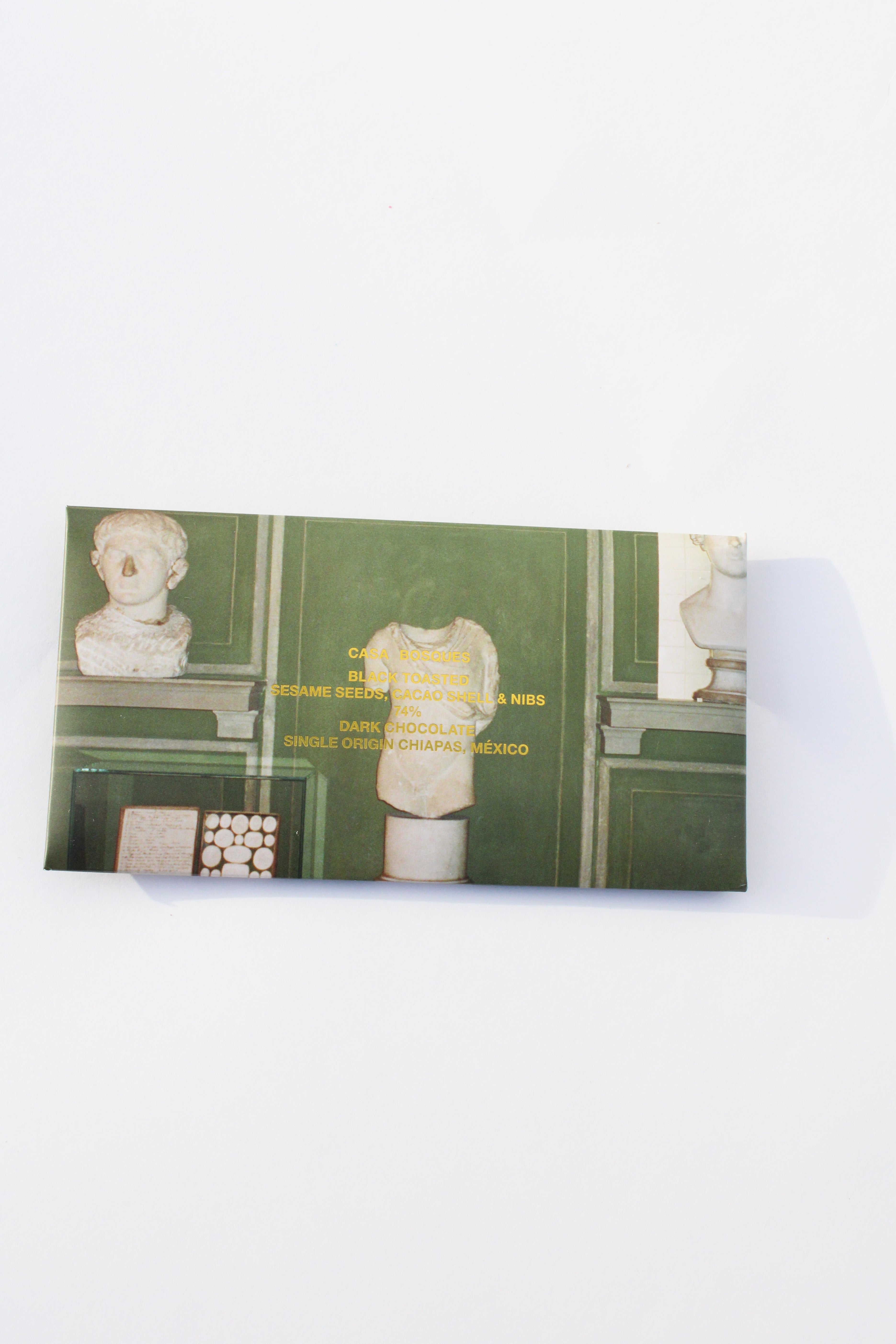 For this bar, all parts of the bean—including the nib and crunchy shell—were included. The outcome is an indulgent economy of taste and crunch, playfully enhanced with the smokiness of the black toasted sesame seeds.