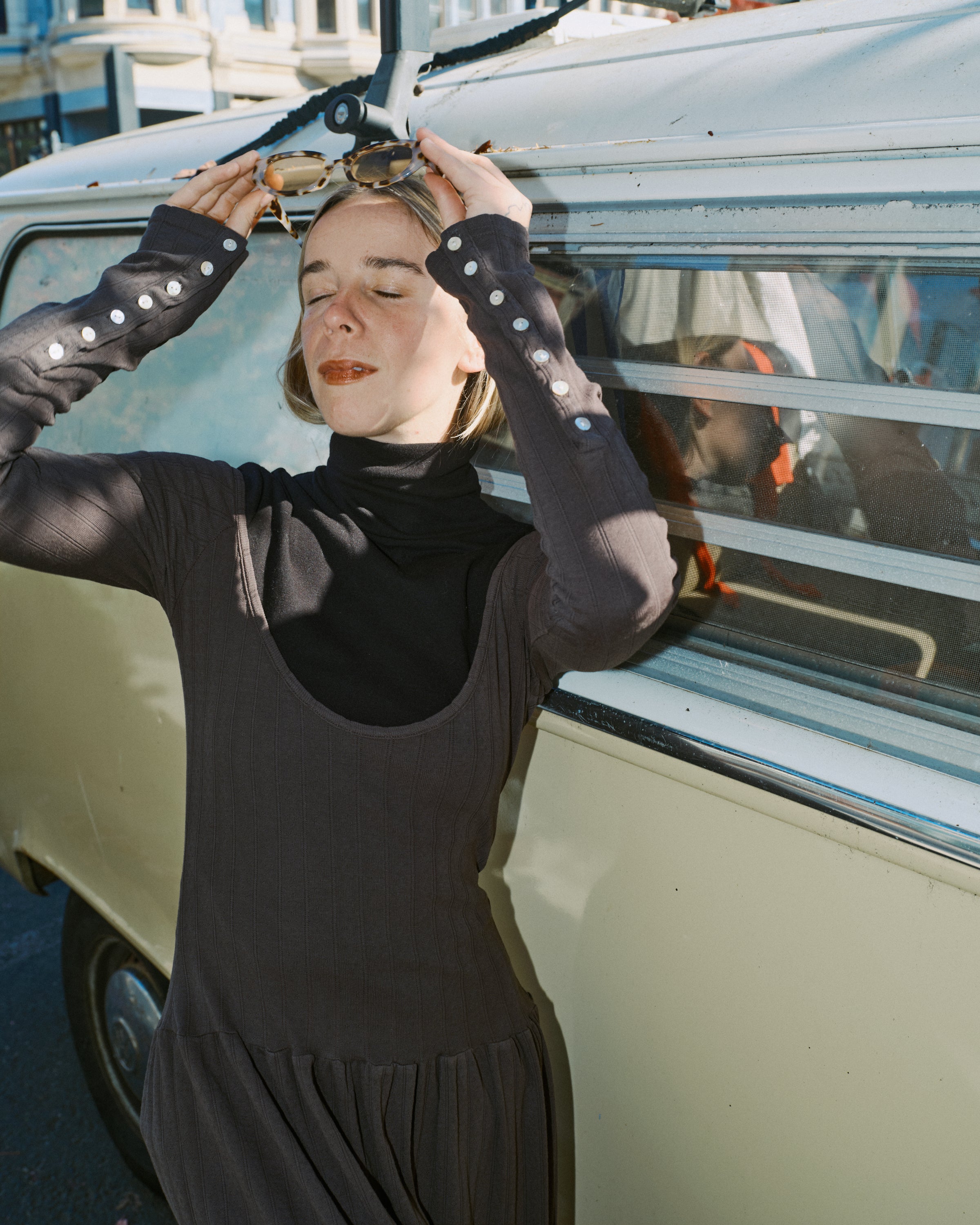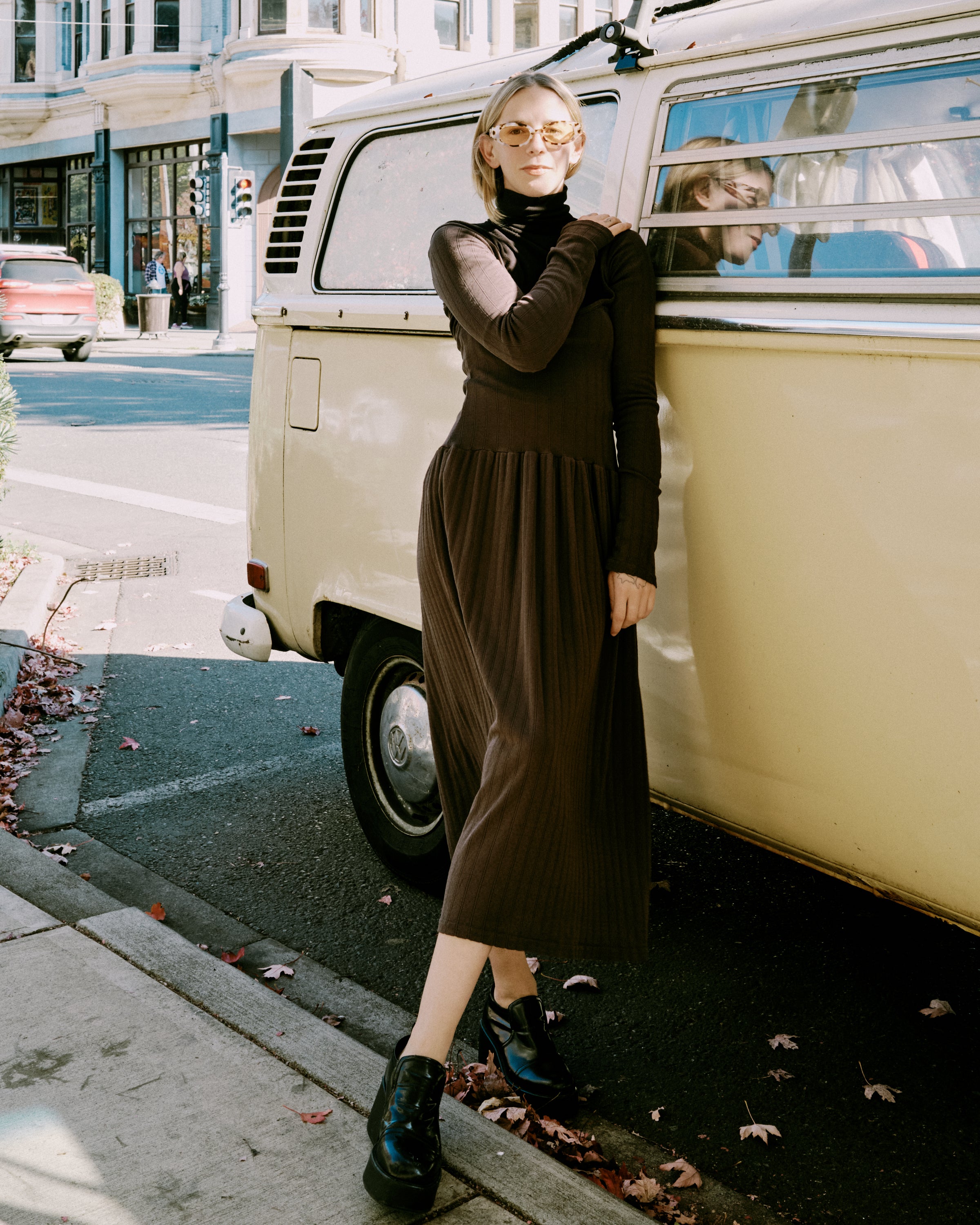 Named for the pioneering dance and theater icon Pina Bausch. The Pina Scoop Neck Dress is made from the softest double cotton tee fabric. Featuring a button sleeve and a scoop neck, this style is a mix of elegance and cozy comfort. This piece can be worn in reverse with the scoop as a low back!